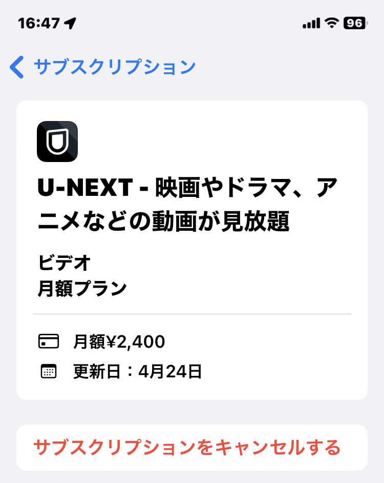 忘れないように、すぐにキャンセルしておくと、期限まで無料で見ることができます。